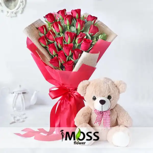 21 Adet Kırmızı Gül Buket & Teddy Bear Tasarım 'da kullanılan çiçek ve aksesuarlar stok durumuna göre farklılık gösterilebilir.