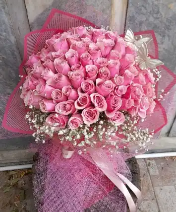 33 Adet Pembe Gül Buketi Tasarım 'da kullanılan çiçek ve aksesuarlar stok durumuna göre farklılık gösterilebilir.