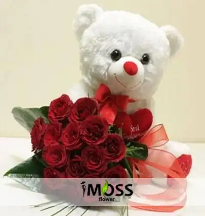 9 Adet Kırmızı Gül & Şirin Ayıcık Tasarım 'da kullanılan çiçek ve aksesuarlar stok durumuna göre farklılık gösterilebilir.