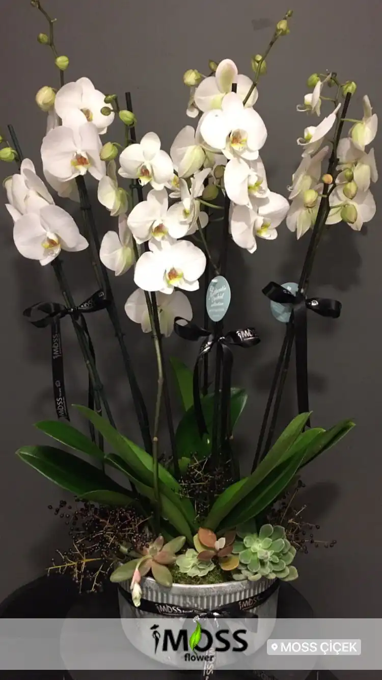 6 Dal Beyaz Orkide Sukulent Birleşimi