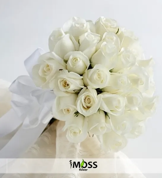 Beyaz Gül Gelin El Buketi Tasarım 'da kullanılan çiçek ve aksesuarlar stok durumuna göre farklılık gösterilebilir.