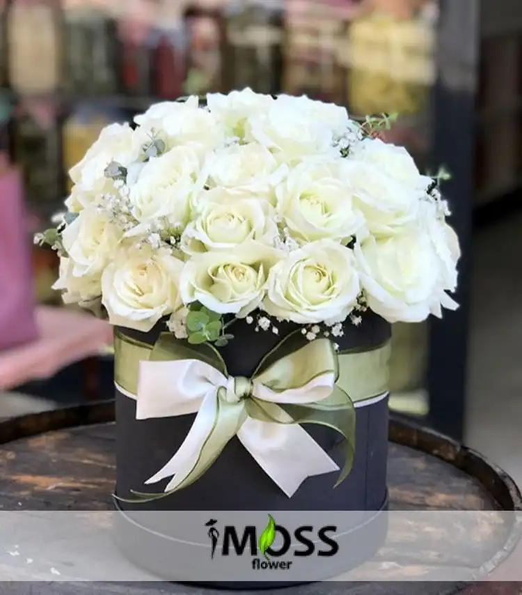 Beyaz Gül Kutu Tasarım 'da kullanılan çiçek ve aksesuarlar stok durumuna göre farklılık gösterilebilir.