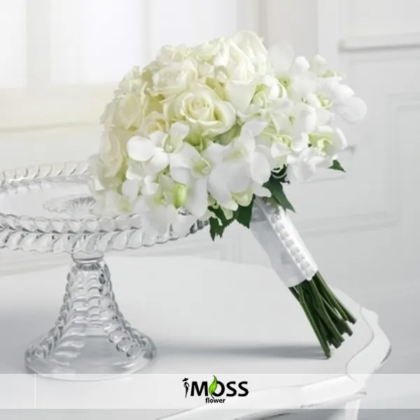 Gelin Buketi Beyaz Aşk Tasarım 'da kullanılan çiçek ve aksesuarlar stok durumuna göre farklılık gösterilebilir.