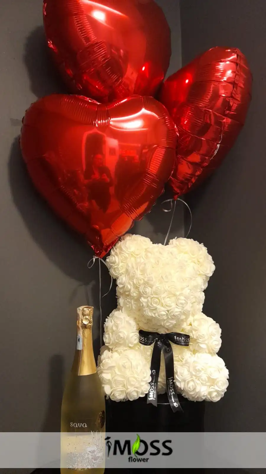 güllerden ayıcık,balonlarla,şampanyasıyla