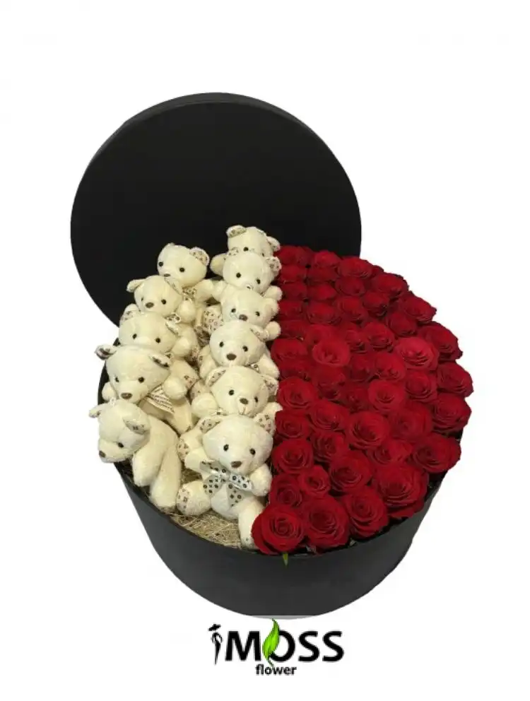 Kutuda Kırmızı Gül & Teddy Bear Tasarım 'da kullanılan çiçek ve aksesuarlar stok durumuna göre farklılık gösterilebilir.