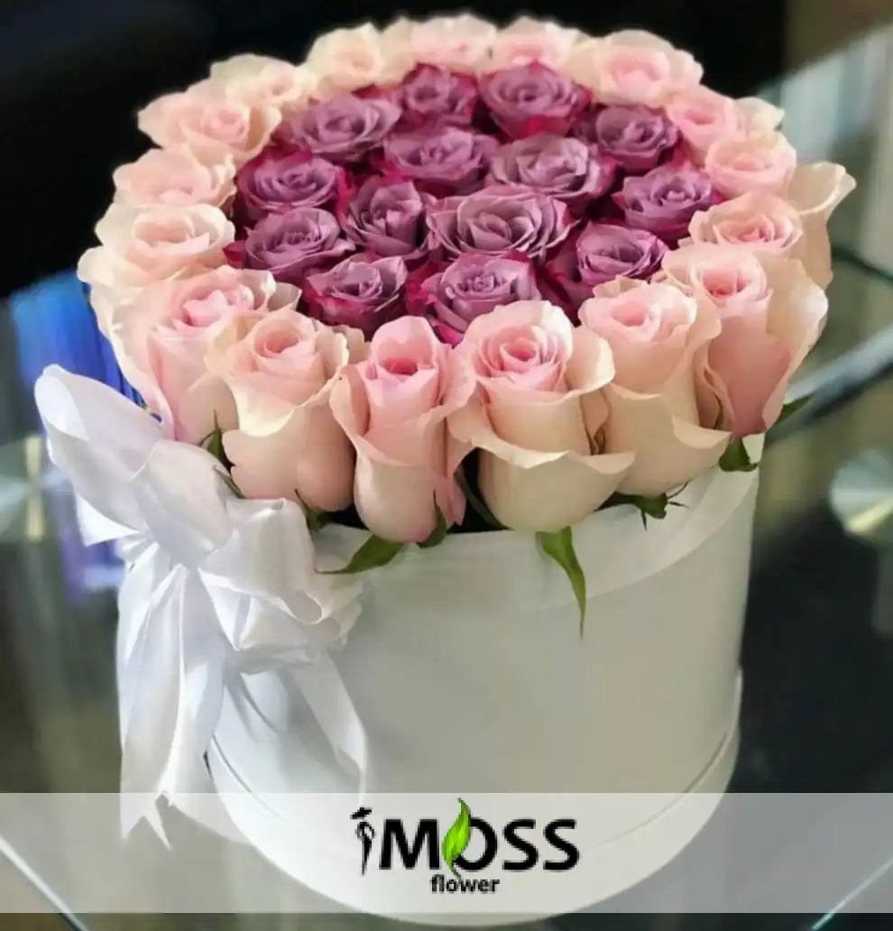 Beyaz kadife kutu içerisinde 25 adet ithal pembe & lila ithal gül