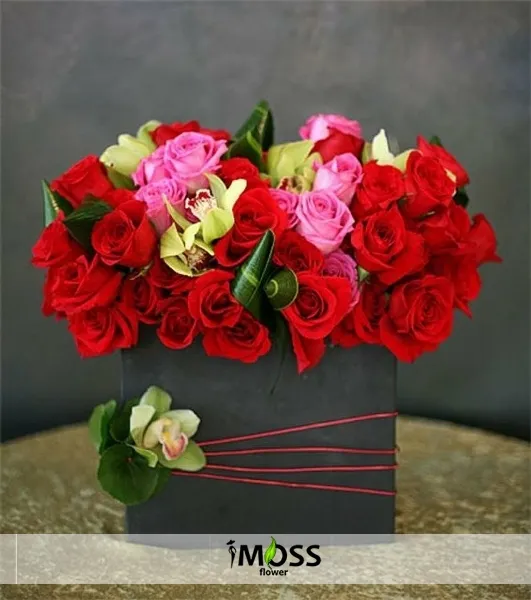 SİYAH KUTUDA ORKİDE VE GÜLLER