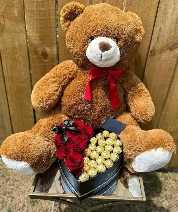 Teddy Bear & Kalp Kutu Tasarım 'da kullanılan çiçek ve aksesuarlar stok durumuna göre farklılık gösterilebilir.