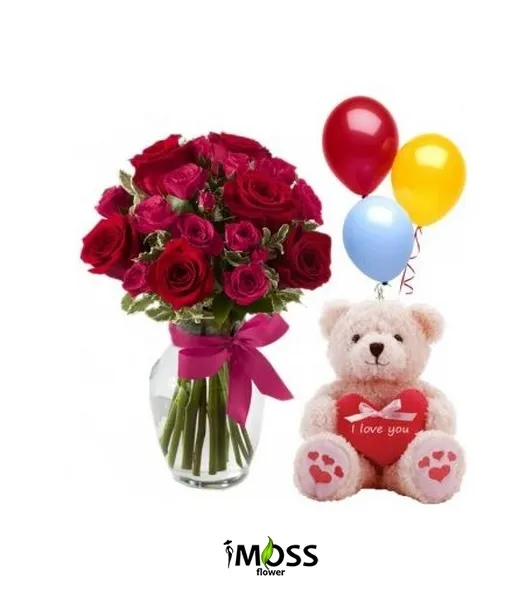 VAZODA 21 GÜL AYICIK VE BALONLAR Tasarım 'da kullanılan çiçek ve aksesuarlar stok durumuna göre farklılık gösterilebilir.