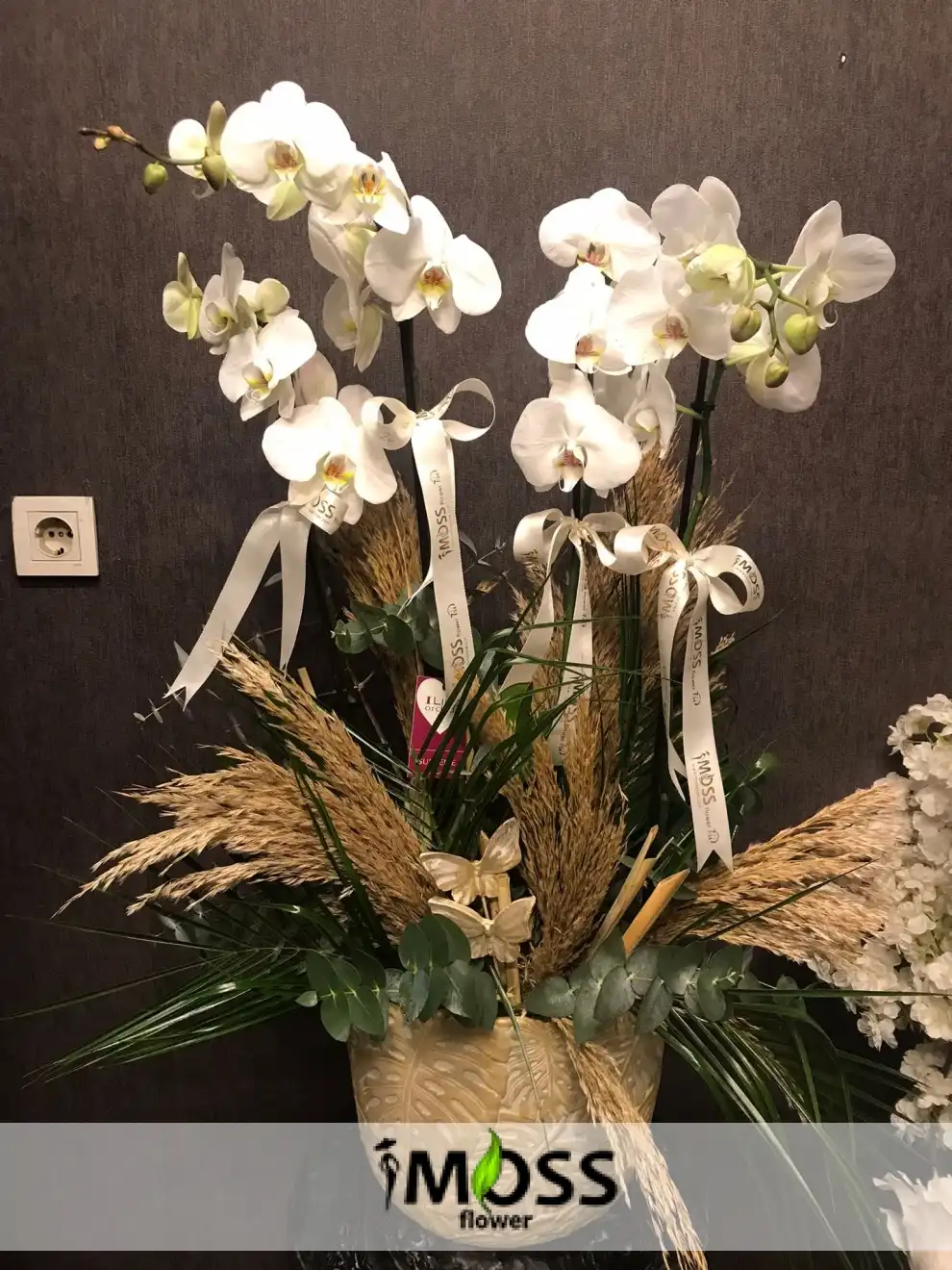 Vip Beyaz Orkide Tasarım 'da kullanılan çiçek ve aksesuarlar stok durumuna göre farklılık gösterilebilir.