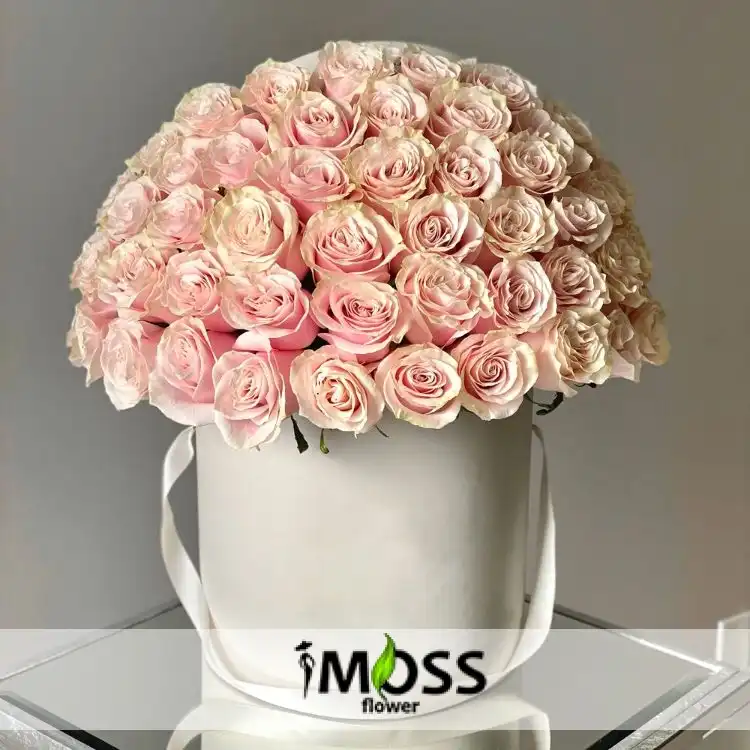 Beyaz kadife kutu içerisinde 51 adet ithal pembe gül